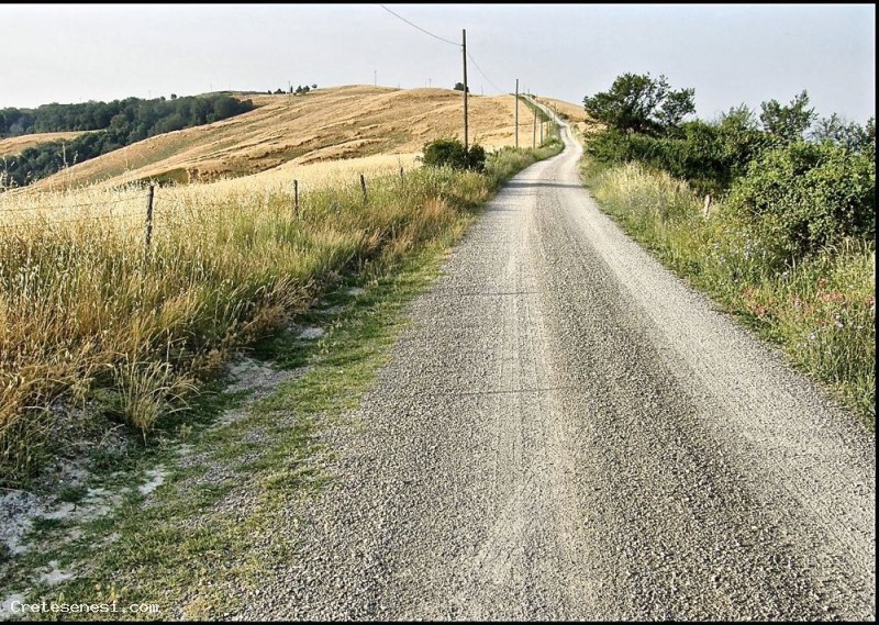 Made a hundred yards on the right of the first curve, you take a rather bumpy dirt road that comes down the road that connects Asciano in Lucignano d'Arbia going from Montauto.
