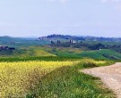 On the right you see the historic center of Asciano, surrounded by greenery and on the right the Ombrone valley, surrounded by splendid hills. Shortly after, turning left, you take an old hillside road that leads to the La Casella farm and then to the Pieve dei Preti, giving us a view of the countryside as far as the eye can see.