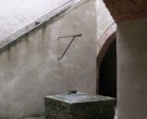 Questo manufatto in travertino attesta l'ampliamento e la ristrutturazione del convento ad opera di Antonio, Padre Abate di San Galgano nel 1486, epoca di grande fermento e crescita del paese.