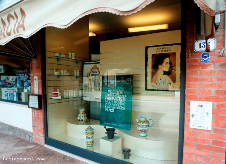 Da oltre 30 anni al servizio della collettività offre prestazioni gratuite come la misurazione della pressione arteriosa e la riscossione dei ticket ospedalieri, un reparto per l’infanzia dove senza mai perdere di vista la qualità non viene meno la possibilità del risparmio, il noleggio di bilance pesa bambini, tiralatte elettrici, apparecchi aerosol, prodotti per la veterinaria ed una fornita profumeria e cosmetica con una linea di prodotti marcati Farmacia Val d’Arbia a garanzia degli esigenti clienti.