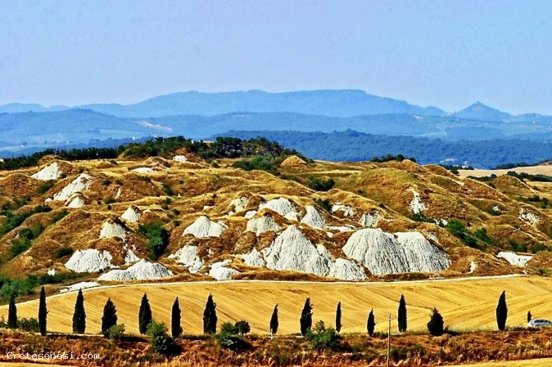 Oltre a trovarsi in mezzo a questo strano paesaggio di cucuzzoli si ha la possibilità di trovarsi su una terrazza naturale: affacciata verso nord su Siena e verso sud-est sulle dolci curve di terra che contraddistinguonole Crete Senesi.