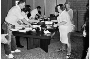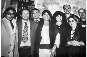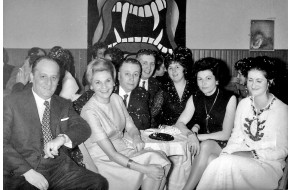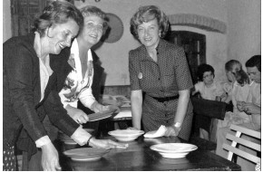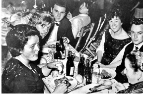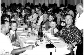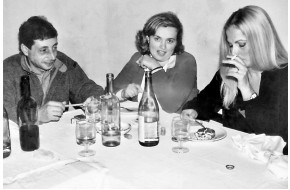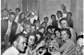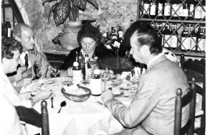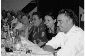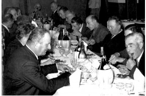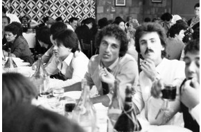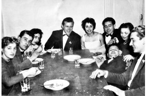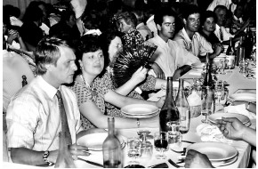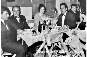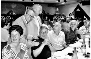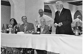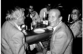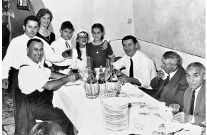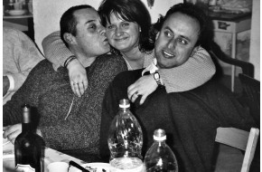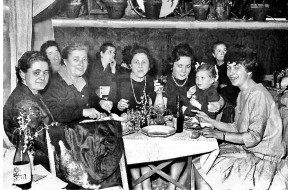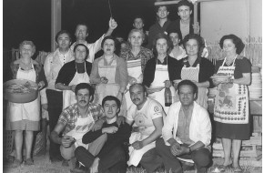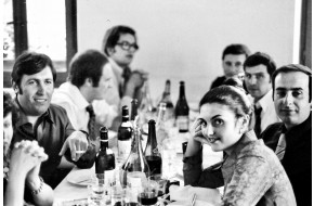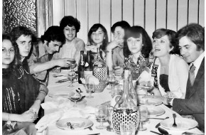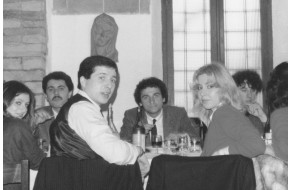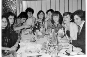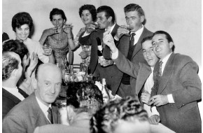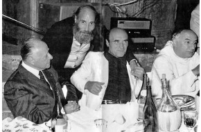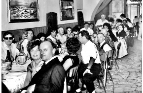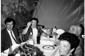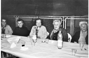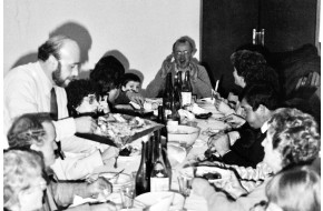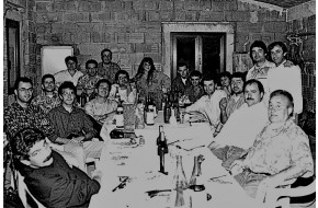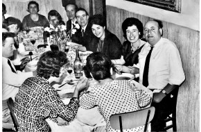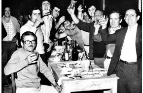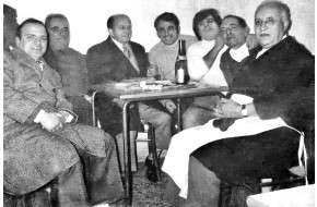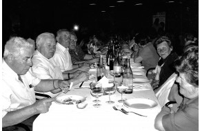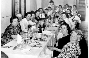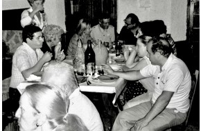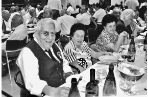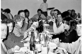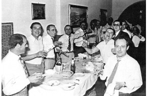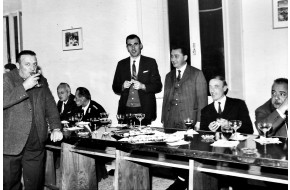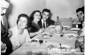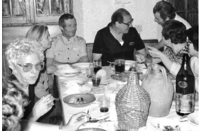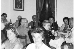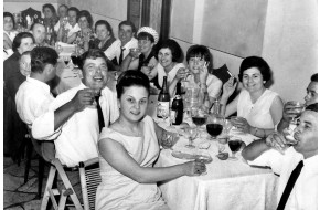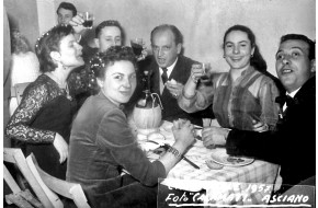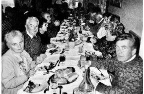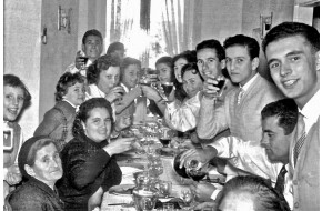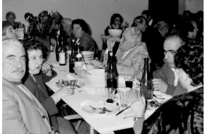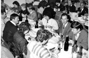 Un allegro gruppo di amici durante una cena nel salone della Misericordia. Da sinistra:...