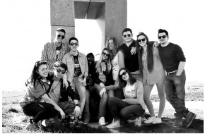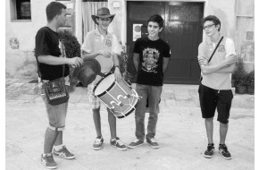 Gruppo di giovani amici appassionati di musica, immortalati all'interno di uno studio ...