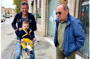 Nonno Ragoni, padre di Lucrezia ha deciso di portare in giro il bel nipotino in bicicletta...