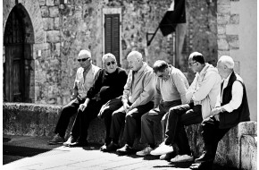 Un terzetto di pensionati incontratisi ai giardini dove batte il sole: Angiolo Angio...