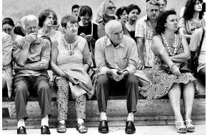 Classica foto ricordo sulle scale della Basilica, per il gruppo di nati nel 1948 e che han...