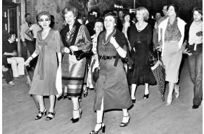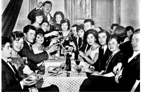 Gruppo di giovani amici di un tempo remoto, tutti elegantemente vestiti. Ci sembra di r...