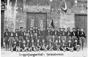 Questa foto, conservata da Ferruccio Ferri (il primo a sinistra), nato a Montepulciano e v...