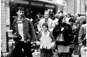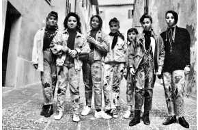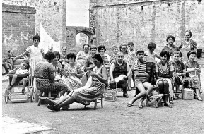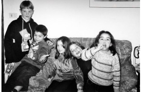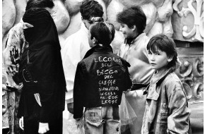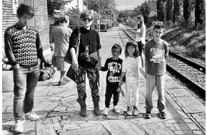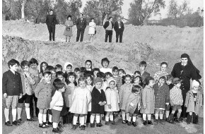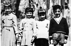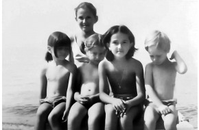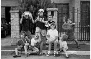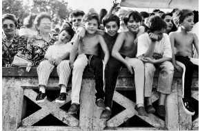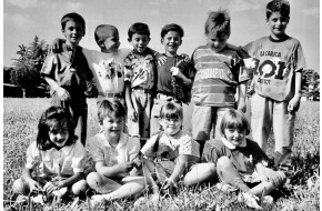 Foto inusuale che ritrae un gruppo di bambini, controllati a distanza da una mamma. Di tu...