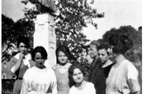 1925? - Gruppo di ragazze intorno al monumento a Cassioli