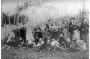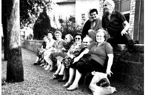 Gruppo di abitanti del piccolo borgo collegato alla Villa padronale. Partendo da sinistra,...