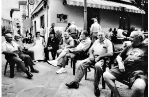 Incontro, nel centro storico di Asciano, fra pensionati. Aceto, arrivato in paese per p...