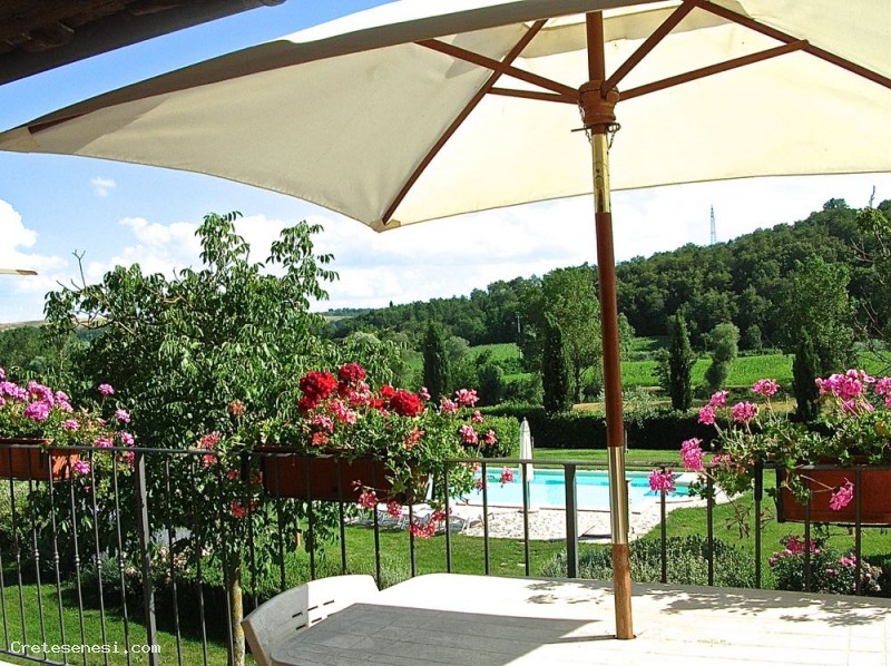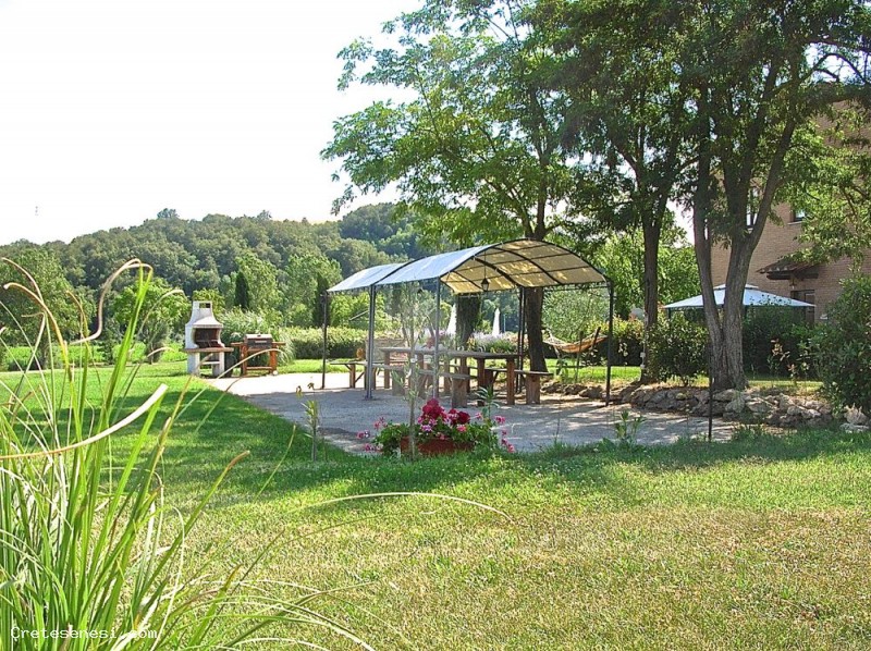 Inoltre nell'ampio giardino intorno al casolare, in posizione panoramica e soleggiata è stata realizzata la piscina (6m x 12m) aperta da Maggio a Ottobre, attrezzata con tavolini, lettini e ombrelloni che permette tranquilli momenti di relax magari dedicati a piacevoli letture.
