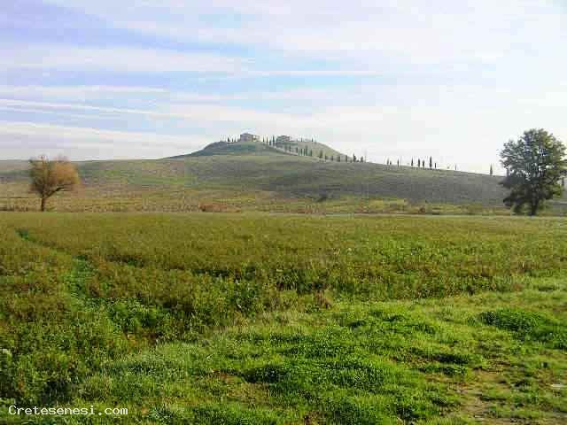 La sua collocazione geografica è connotata dalla via Lauretana Antica che, collegando Siena ad Asciano, passa ai piedi della collina. Il paesaggio che la circonda è uno dei più suggestivi del sud della Toscana.