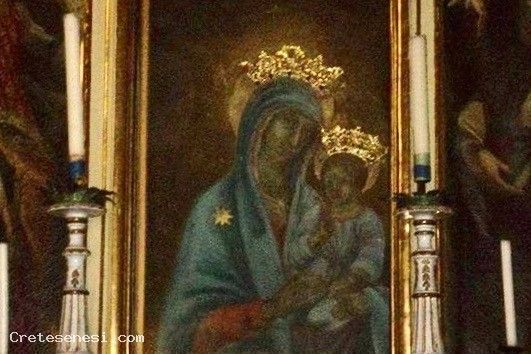Sorse intorno ad una immagine sacra molto venerata, una "Madonna col Bambino benedicente", affresco del Trecento, molto ridipinto, oggi sull'altar maggiore racchiuso entro un dipinto su tela del primo Seicento.