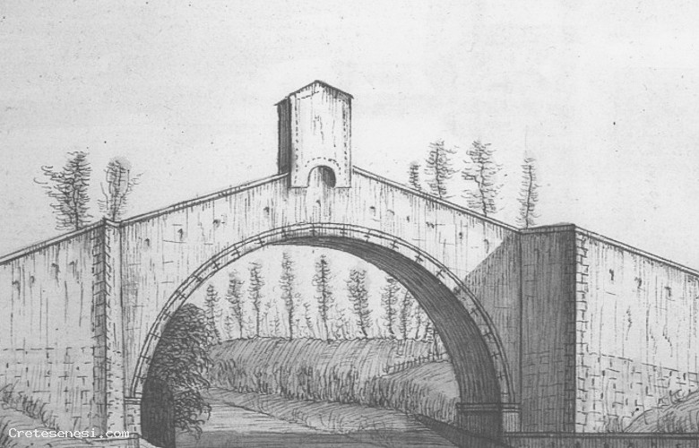 According to reliable historical documents, before the bridge of brick and stone was built, there was a wooden bridge in the same place. These documents consist of 12th-century deliberations of the governing body of Siena with regard to repairs for the flood-damaged bridge over the Ombrone.