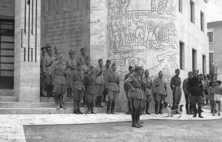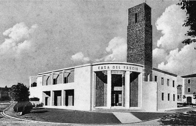 Built on the design of Engineer Armando Sabatini, the Casa del Fascio, with its indoor cinema and the G. Marconi Stadium at its back, was inaugurated on 27 November 1937 in the presence of Minister Achille Starace. In 1948, the militaristic inscriptions and emblems that adorned the assembly hall were removed and the building was used as the House of the People.