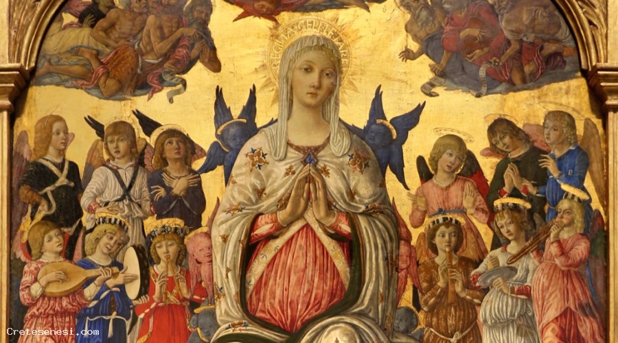 From this event a surprising story emerges, perhaps only for non-experts: the triptych, created for the church of Sant'Agostino, was reassembled with the Assumption of the Virgin by Giovanni di Paolo, from a polyptych of the Collegiate.