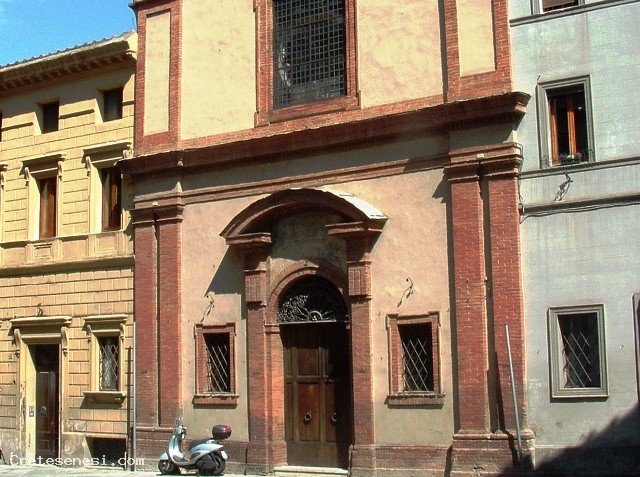 La chiesa dei Santi Niccolò e Lucia sede dell’omonima Compagnia laicale, che fu ricostruita sul finire del Cinquecento su un preesistente edificio medioevale dotato anche di un piccolo ospedale. La facciata è un tipico esempio di architettura senese tardo-rinascimentale, con il grande timpano su cui sono presenti superstiti tracce di un affresco di Ventura Salimbeni. L’interno, ristrutturato nel Seicento, accoglie una notevole quantità di opere pittoriche di artisti senesi, come gli affreschi di Sebastiano Folli sulla volta, tra i quali spicca al centro, il Trionfo di S. Lucia, ardita prospettiva mutuata dalla camera degli sposi del Mantegna a Mantova, la cui lezione, a distanza di un secolo e mezzo, non era stata evidentemente dimenticata. La grande tela centinata sull’altar maggiore con il martirio di S. Lucia è di Francesco Vanni e l’affresco nel catino absidale è di Ventura Salimbeni. Ai lati dello stesso altare sono presenti due notevoli statue in terracotta policroma del Quattrocento, raffiguranti S. Lucia e S. Nicola. La prima è attribuita a Giacomo Cozzarelli o Giovanni di Stefano che sarebbe anche l’autore della seconda che si caratterizza per il bellissimo volto. Sull’altare di sinistra vi è un olio su muro con la Crocifissione di Simondio Salimbeni, mentre il crocifisso è una scultura policroma più antica, completamente ridipinta. Nell’altare di destra, decorato da stucchi del Silini, si venera una piccola immagine con il volto della Madonna, che dicesi essere una copia dell’affresco di Simone Martini sull’antiporto di Camollia. Notevoli e rari i ricchi arredi in legno intagliato dei primi del Seicento di cui è ricca la chiesa. Nella contigua cappella della Compagnia anch’essa ornata da diverse pitture sempre di scuola senese per lo più del Seicento, si conservano alcuni pregevoli oggetti di culto, come uno stendardo con S. Nicola e S. Lucia degli inizi del ‘600, quattro testate di bara di Rutilio Manetti ed un reliquiario in argento con la reliquia di S. Lucia, opera del XVI secolo. Del tutto singolare e assai raro, è poi un ex voto del 1496, nel quale è raffigurato un certo Girolamo di Pietro Biringucci mentre viene sottoposto a tortura durante un interrogatorio dal quale uscirà del tutto scagionato dalle accuse rivoltegli, grazie all’intercessione di S. Nicola.