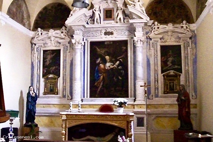 L'Oratorio, luogo di ritrovo di un antica compagnia laicale oggi scomparsa, possiede un omogeneo arredo seicentesco e un apparato decorativo tutto incentrato sul tema della Passione di Cristo. Il tema ricorre sia sulle lunette affrescate nel 1660 da Francesco Nasini, che sull'impianto dell'altare maggiore realizzato nello stesso periodo da Bernardino Mei e Deifebo Burbarini. Sempre dello stesso periodo il bel coro ligneo che occupa la parte terminale dell’oratorio.