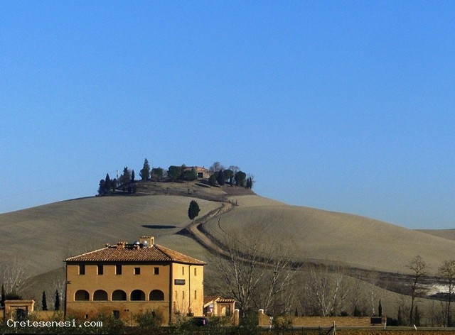 E’ un percorso ad anello che si sviluppa prevalentemente su tracciato sterrato; in certi tratti richiede un certo impegno. Si parte da Arbia in direzione di Siena e subito prima del ponte sul torrente Arbia, sulla nostra sinistra, prendiamo una strada bianca che costeggia per più di un chilometro il corso d’acqua. Poi il tracciato inizia a salire e subito la strada presenta un fondo pocoe imbrecciato; si supera il podere Bandita, si tocca la località Collanza da ciu si gode un vista unica sulle Crete e su Siena. Poi si scende verso la Fattoria di Salteano e da qui inizia una ripida discesa fino ad Isola d’Arbia. Appena qualche centinaio di metripercorsi sull'asfalto e poi si continua sulla sinistra verso la stazione di Isola d’Arbia ee si prosegue verso Ponte a Tressa, che però non tocchiamo. Sempre su strada sterrata raggiungiamo l’imponente e suggestiva Grancia di Cuna dove seguiamo le indicazioni verso Monteroni che raggiungiamo dopo circa due chilometri lungo la SS 2 Cassia. Alle ultime case di Monteroni, prendiamo la provinciale che porta ad Asciano e che dopo il ponte sull’Arbia abbandoniamo per seguire le indicazioni verso San Fabiano. Da qui proseguimo su e giù per le crete fino ad incontrare, dopo Medane, la Lauretana Antica. Il percorso si sviluppa lungo un tracciato sterrato che, in certi tratti, impegna non poco il cicloturista. Man mano che si prende quota, i panorami si allargano sulle Crete ed il loro fascino ripaga ampiamente la fatica affrntata. All'incrocio con la Lauretana, occorre girare a sinistra e percorrere gli ultimi due chilometri per tornare ad Arbia.