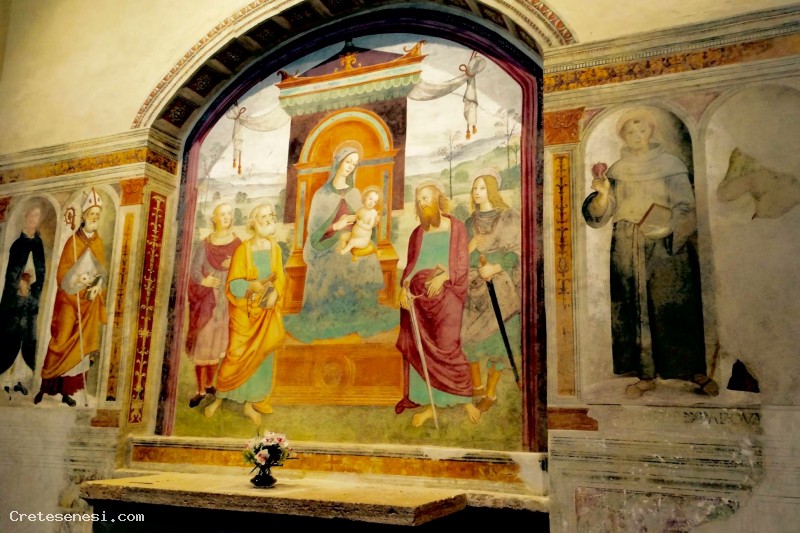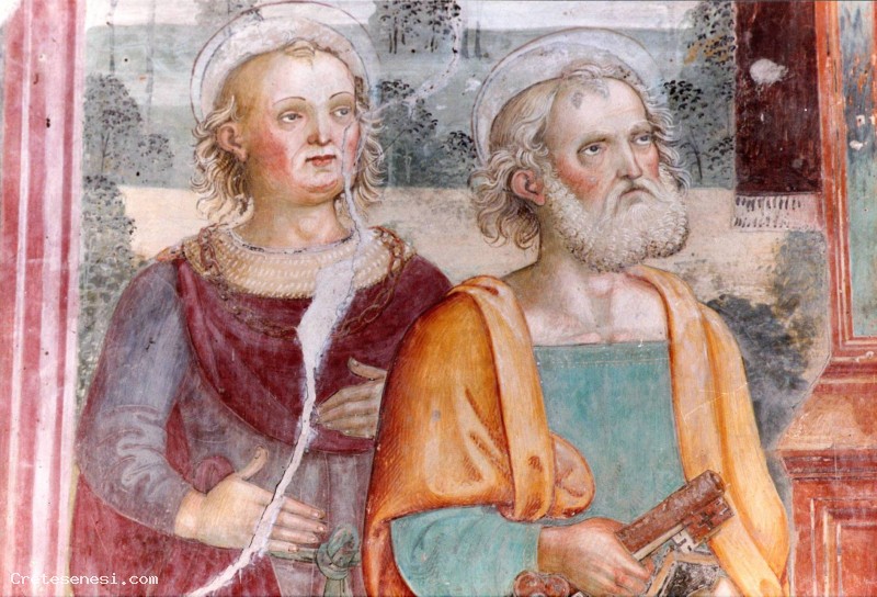 Ecco pertanto che lo studio delle vie Lauretane (strade che conducevano a Loreto e di cui una di esse passa proprio da Asciano), ha permesso di inquadrarne l'esecuzione nell'anno del grande Giubileo di Mezzo Millennio, appunto nell’anno 1500. La presenza dei due Santi Pietro e Paolo, simboli della cristianità, confermerebbe infatti una committenza partita da Roma, dalle istituzioni vaticane, a completamento delle varie iniziative di abbellimento e arricchimento dei luoghi sacri.
