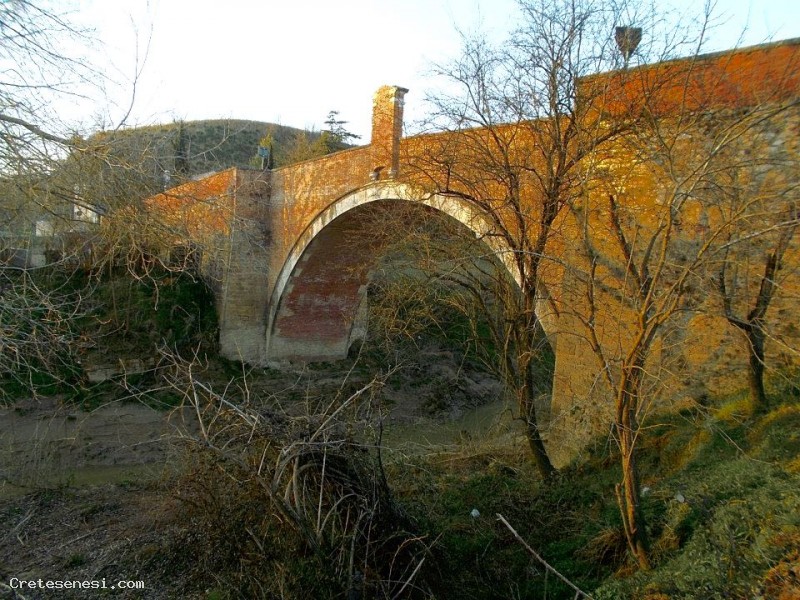 II ponte sull'Ombrone congiunge il paese di Asciano con parte del suo territorio attraverso l'antica via Lauretana, che collegava Siena alla Santa Casa di Loreto.