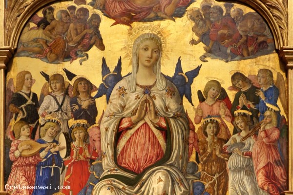 Da questo evento emerge, forse solo per i non addetti ai lavori, una storia sorprendente: il trittico, realizato per la chiesa di Sant'Agostino, fu riassemblato con al centro l'Assunzione della Vergine di Giovanni di Paolo, proveniente da un polittico della Collegiata.