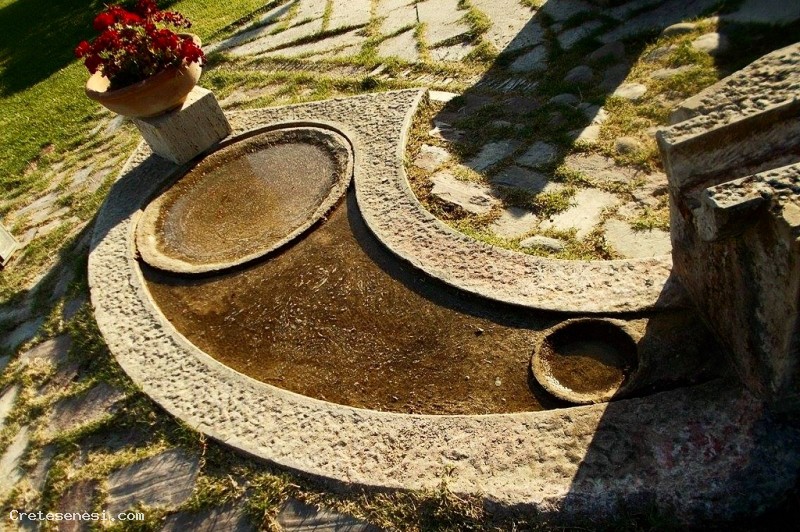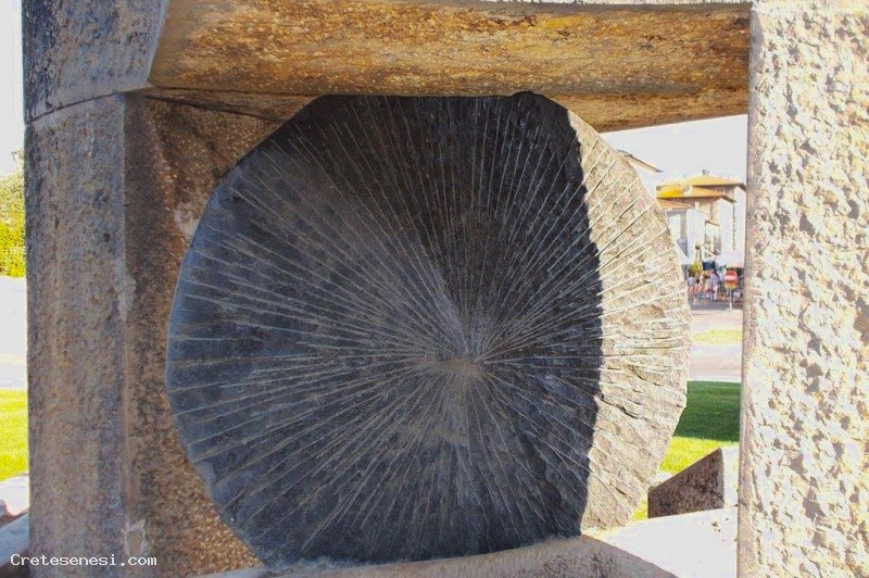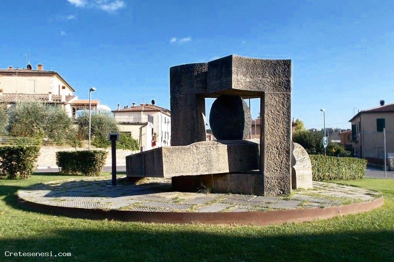 L’opera realizzata a Rapolano come monumento alla Resistenza ripercorre l’attività dell’artista e la sua vocazione per una scultura che restituisca il dialogo simbolico fra l’interno e l’esterno, in cui lo spazio si fa luce e natura: i materiali, travertino e bronzo, si intersecano in un gioco silenzioso di forme e riflessi, che riconducono alla terra e all’acqua, elementi primordiali.