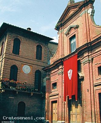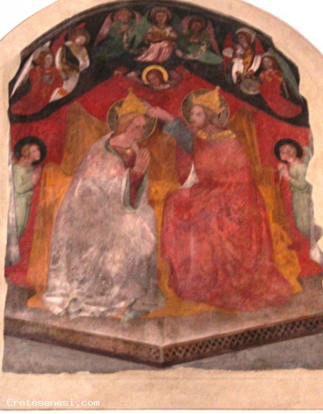 L'edificio fu costruito nel XIV secolo e completamente ristrutturato nel 1705. Dell'arredo originario restano oggi nella chiesa poche opere: una tavola con Madonna in trono col Bambino e due angeli, del 1450 circa, di Matteo di Giovanni, e un affresco con l'Incoronazione della Vergine di un ignoto artista senese del primo Quattrocento. Della seconda metà del XV secolo è un'altra tavola con Madonna in trono col Bambino e santi del senese Pietro di Francesco Orioli.