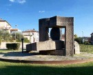 Sculrura moderna collocata su un piccolo spazio verde sulla provinciale nord, poco oltre il giardinetti de I Piani sulla destra