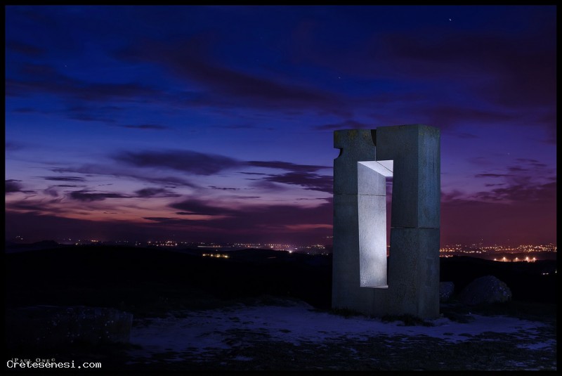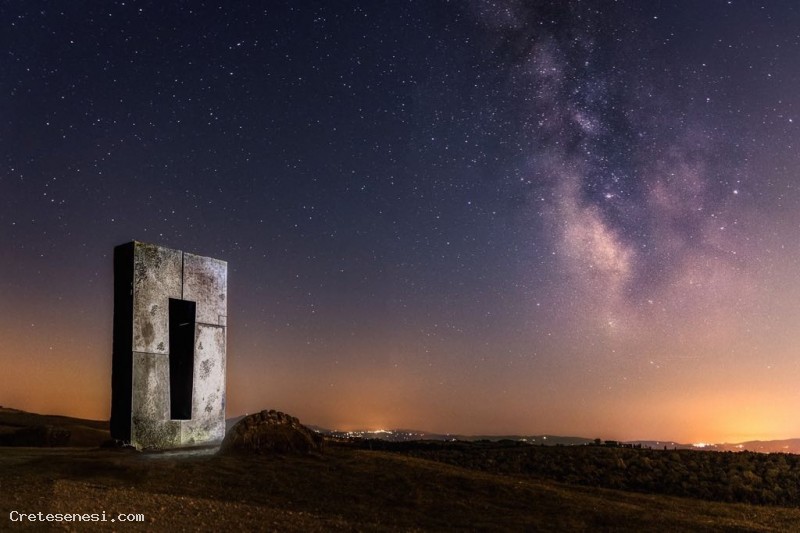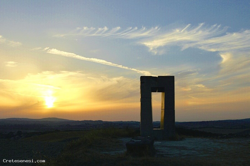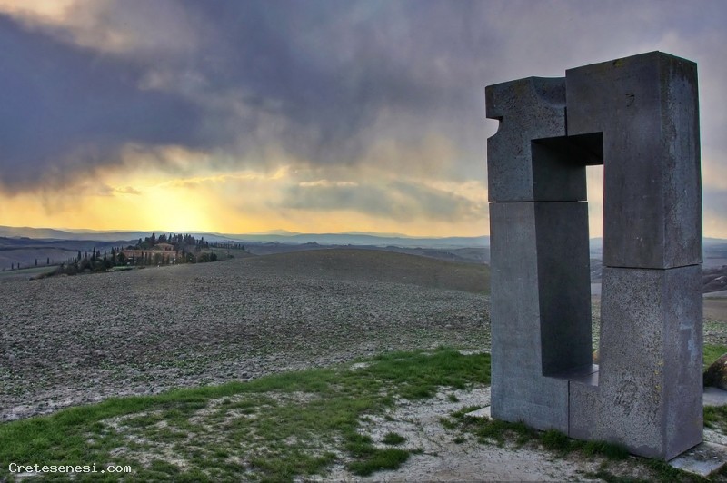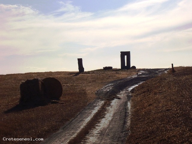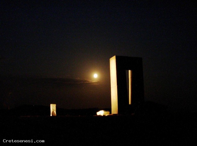 Qualche anno fa un pensiero ha completamente occupato il mio tempo, realizzare in pietra e mettere in spazio tre posizioni familiari: seduta, alzata, sdraiata ... e lasciarle mute a dialogare fra loro nella solitudine e nel silenzio di un luogo naturale. Non avrei mai potuto immaginare che quello che stava per diventare il site transitoire sarebbe stato complice di tanti incontri. Il luogo scelto fu quello: una collina tra Siena e Asciano nel cuore delle Crete senesi, tra Leonina e Mucigliani. Compiendo quel gesto, installando quelle pietre mi resi conto che disegnavano nella luce e nello spazio i limiti di una casa. Una dimora senza mura dalla soglia invisibile. A terra alcune lastre, una sedia per accogliere il passante, un banco, una finestra e per tetto la volta celeste. L'ombra di questo mobilio di pietra tracciava al suolo la sua passeggiata grazie alle apparizioni della Luna e del Sole. Nel solstizio d'estate è nell'appiombo della finestra che il disco solare sparisce, mentre brillano la prima stella e le luci di Siena.